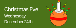 Christmas Eve Wednesday, December 24th: